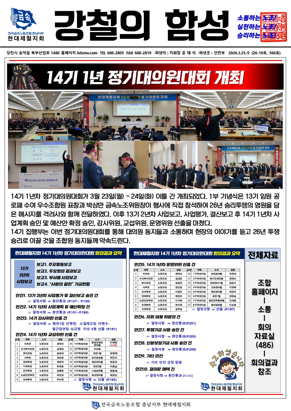 14기 1년차 정기대의원대회 회의결과