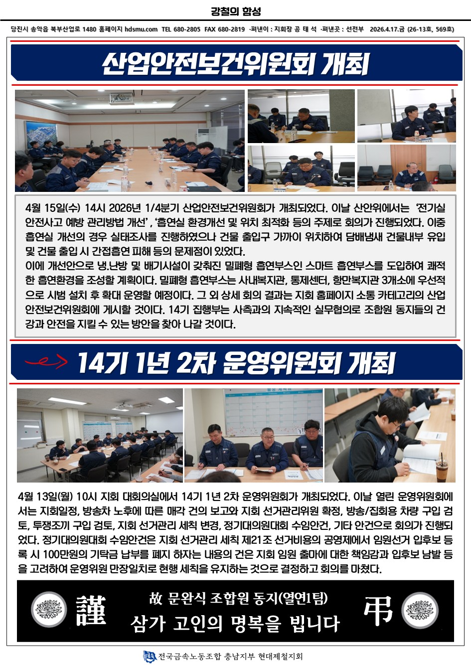 ▶ 訃 告 ◀ 열연1팀 故문완식 조합원 본인상